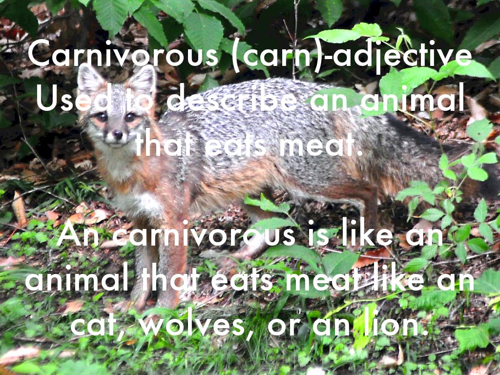 An carnivorous is like an animal that eats meat like an cat, wolves, or an lion.