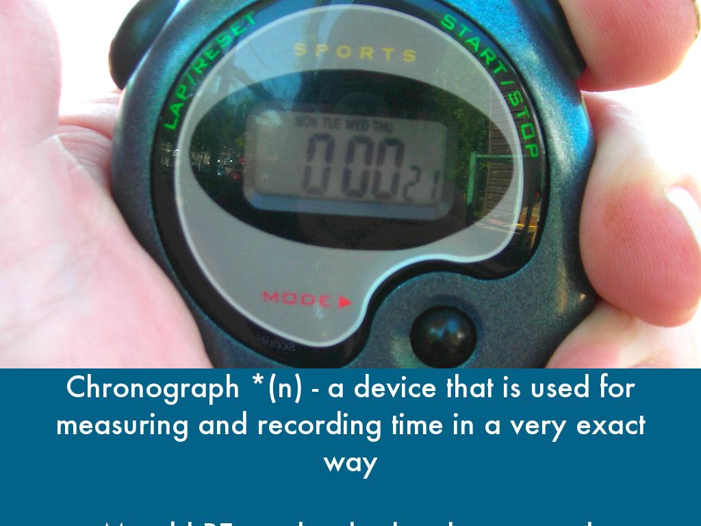 Chronograph *(n) - a device that is used for measuring and recording time in a very exact way