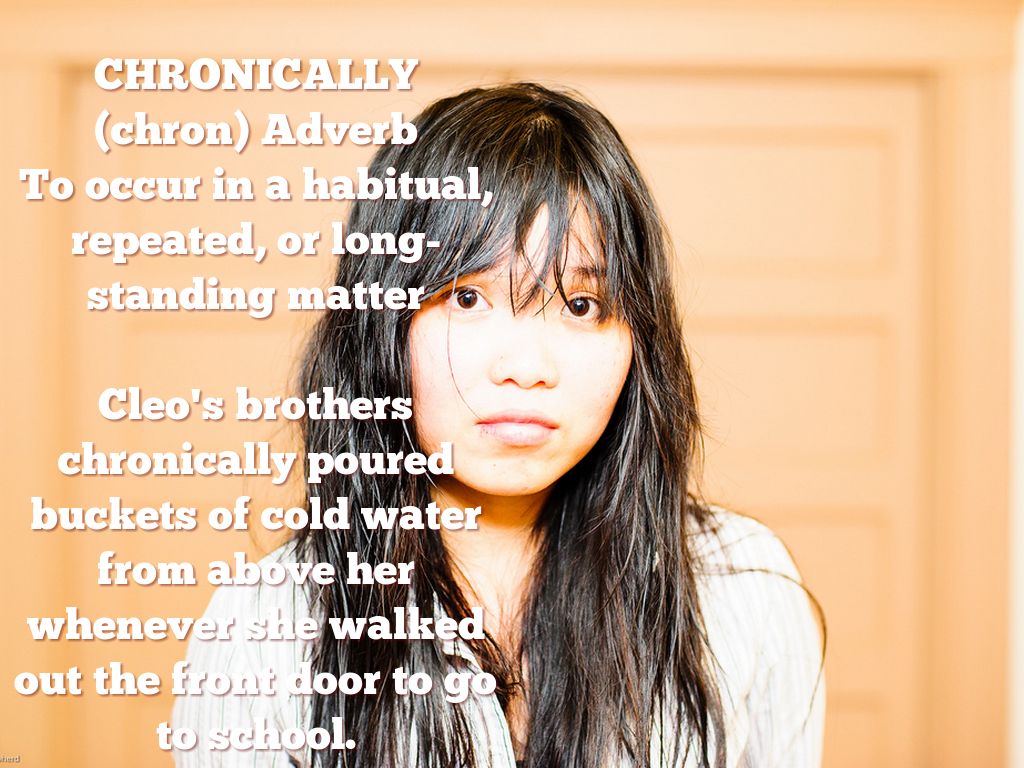 Cleo's brothers chronically poured buckets of cold water from above her whenever she walked out the front door to go to school.