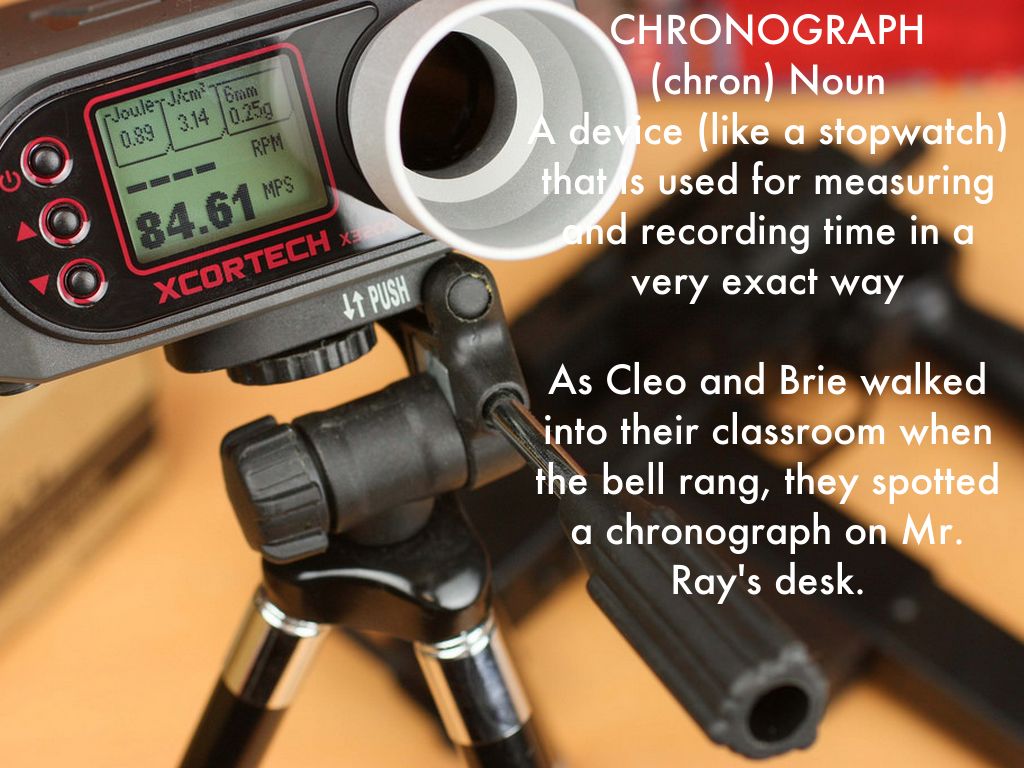 As Cleo and Brie walked into their classroom when the bell rang, they spotted a chronograph on Mr. Ray's desk.