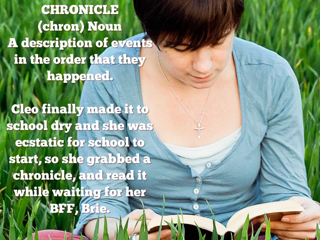 Cleo finally made it to school dry and she was ecstatic for school to start, so she grabbed a chronicle, and read it while waiting for her BFF, Brie.