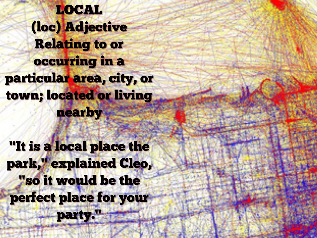 Relating to or occurring in a particular area, city, or town; located or living nearby