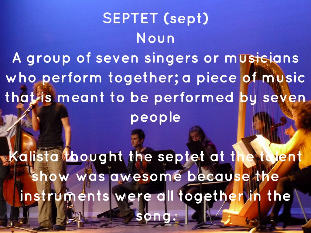 Kalista thought the septet at the talent show was awesome because the instruments were all together in the song.