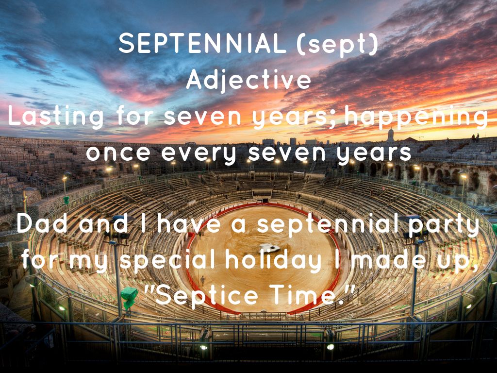 Dad and I have a septennial party for my special holiday I made up, "Septice Time."