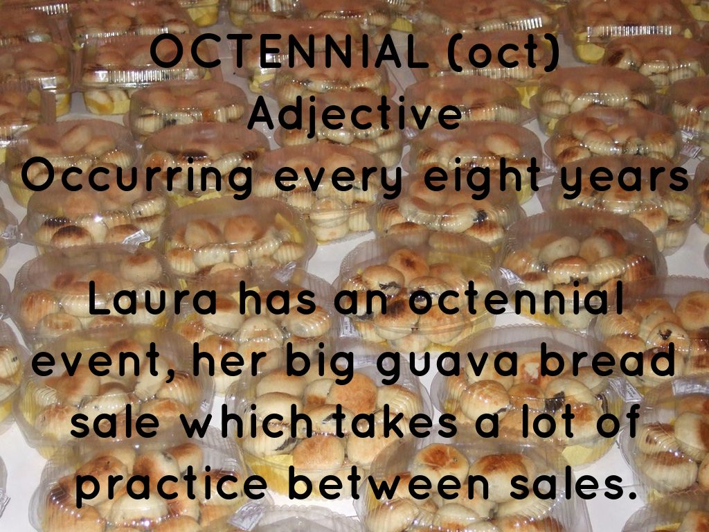 Laura has an octennial event, her big guava bread sale which takes a lot of practice between sales.