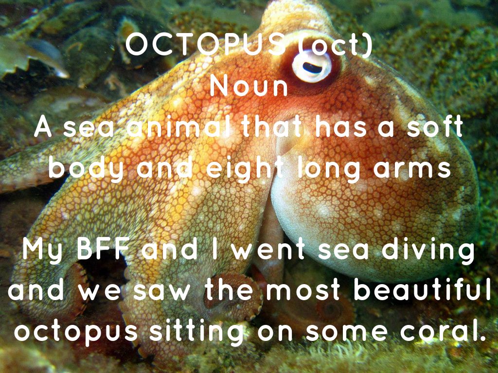 My BFF and I went sea diving and we saw the most beautiful octopus sitting on some coral.