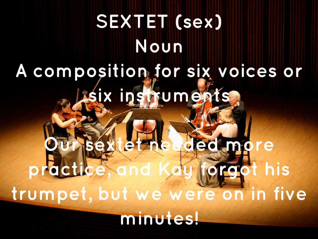 Our sextet needed more practice, and Kay forgot his trumpet, but we were on in five minutes!