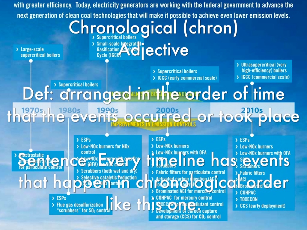 Def: arranged in the order of time that the events occurred or took place