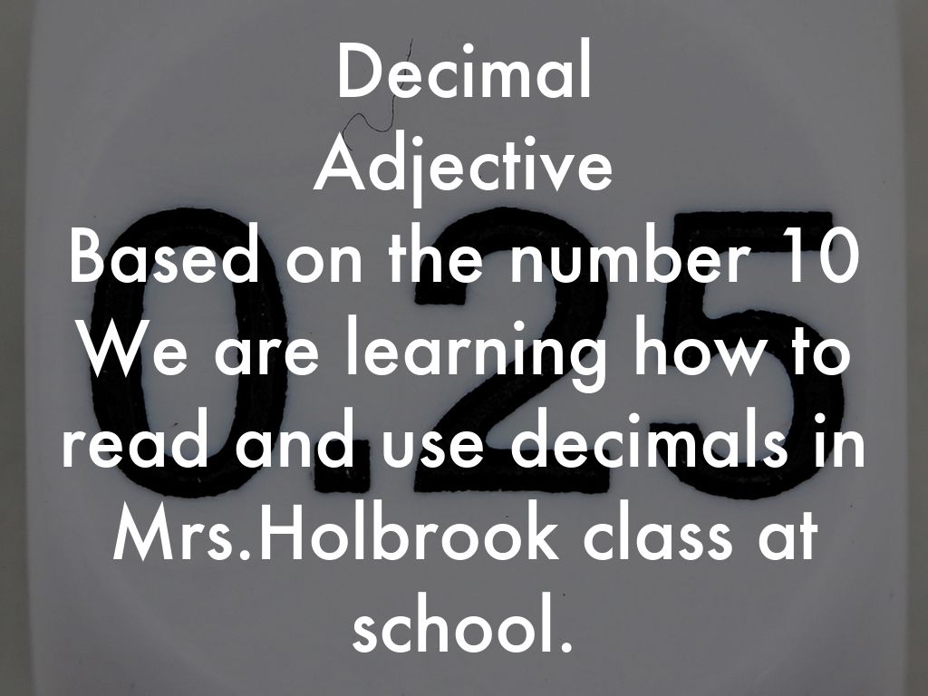 We are learning how to read and use decimals in Mrs.Holbrook class at school.