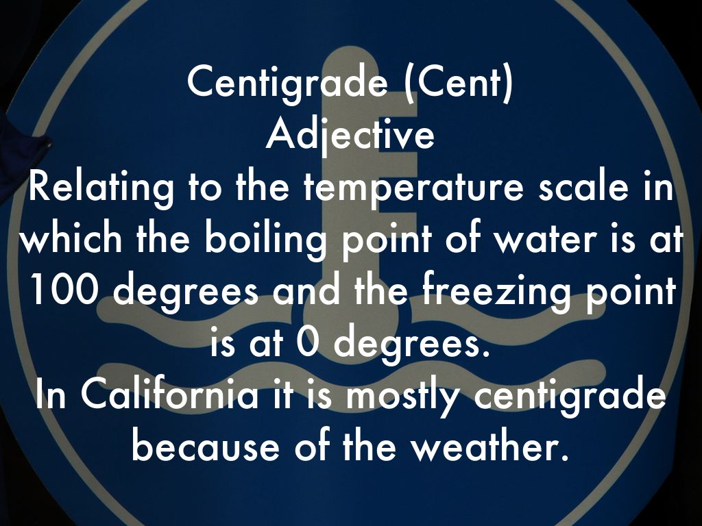 Relating to the temperature scale in which the boiling point of water is at 100 degrees and the freezing point is at 0 degrees.