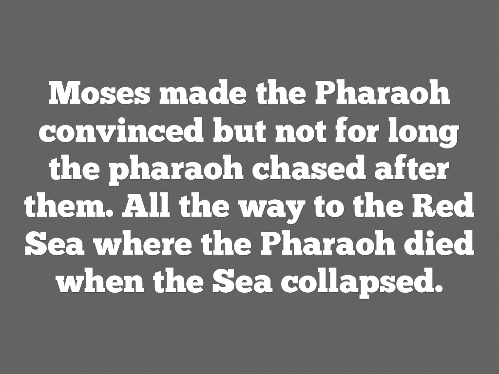 Moses made the Pharaoh convinced but not for long the pharaoh chased after them. All the way to the Red Sea where the Pharaoh died when the Sea collapsed.