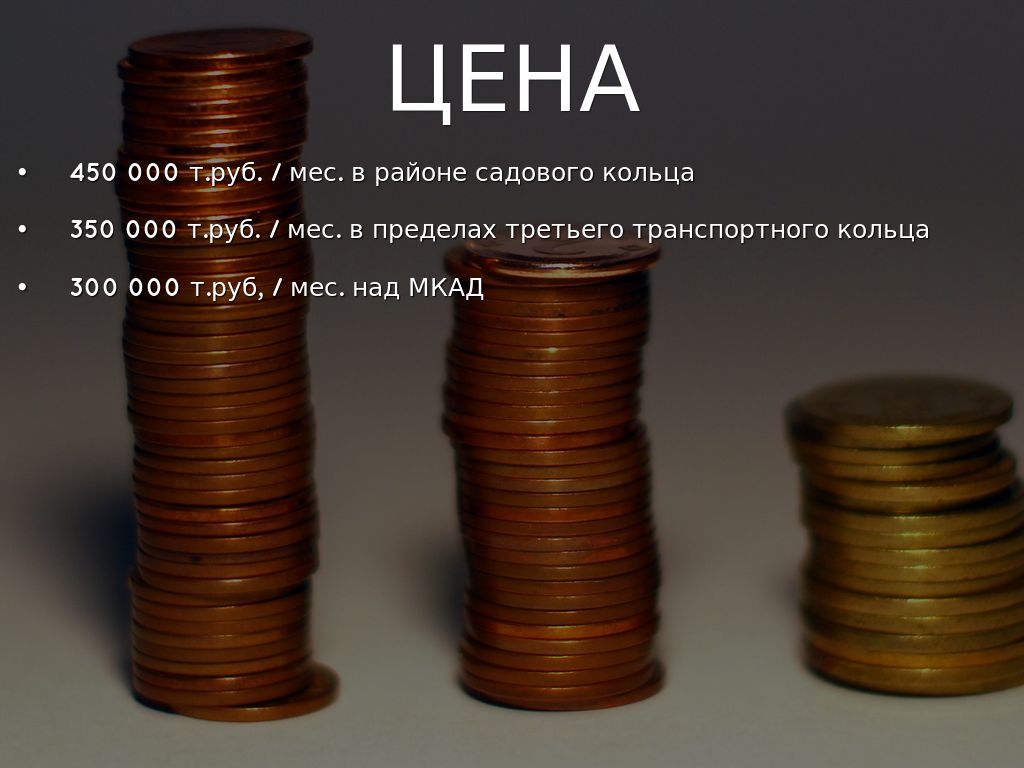 350 000 т.руб. / мес. в пределах третьего транспортного кольца