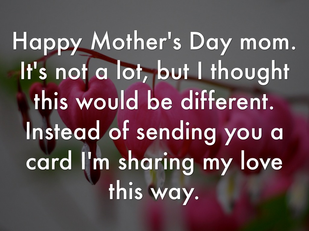 Happy Mother's Day mom. It's not a lot, but I thought this would be different. Instead of sending you a card I'm sharing my love this way.