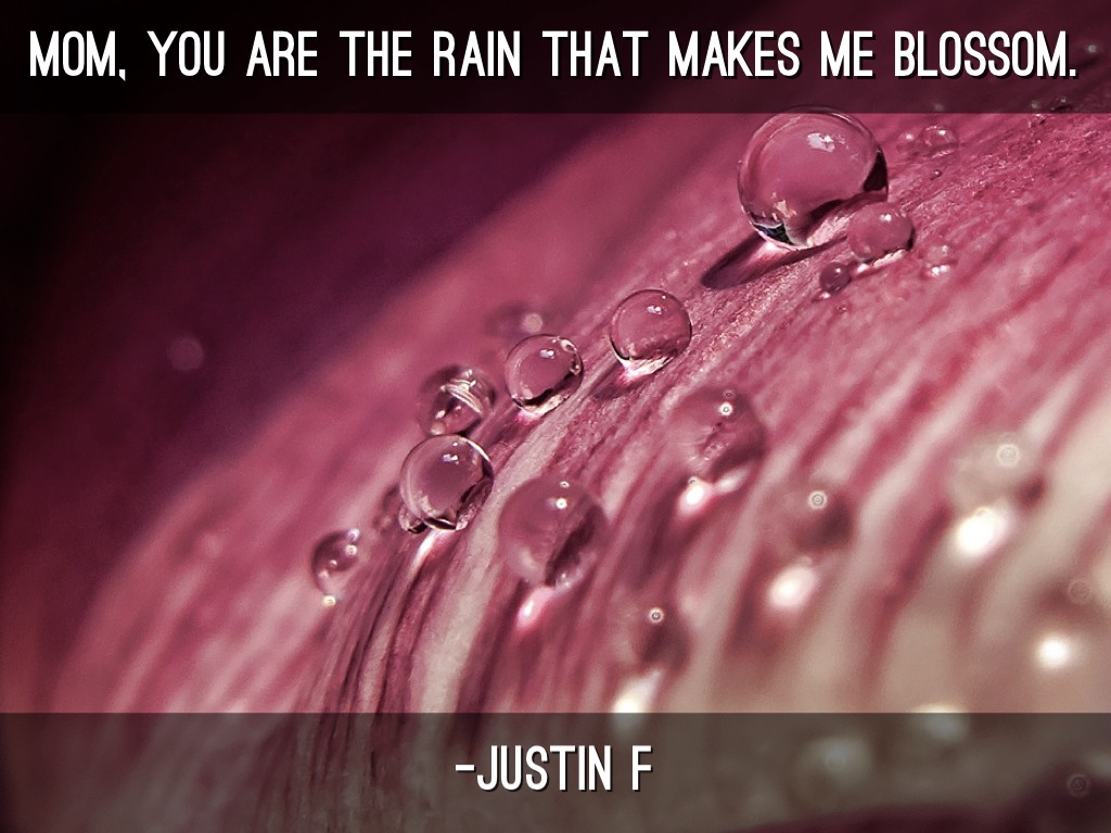 MOM, YOU ARE THE RAIN THAT MAKES ME BLOSSOM.