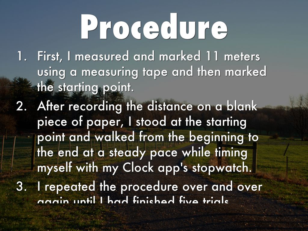 After recording the distance on a blank piece of paper, I stood at the starting point and walked from the beginning to the end at a steady pace while timing myself with my Clock app's stopwatch.