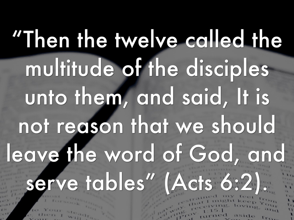 “Then the twelve called the multitude of the disciples unto them, and said, It is not reason that we should leave the word of God, and serve tables” (Acts 6:2).