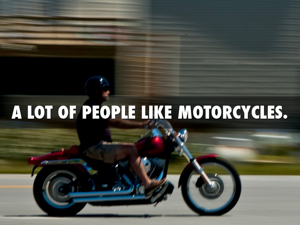A LOT OF PEOPLE LIKE MOTORCYCLES.