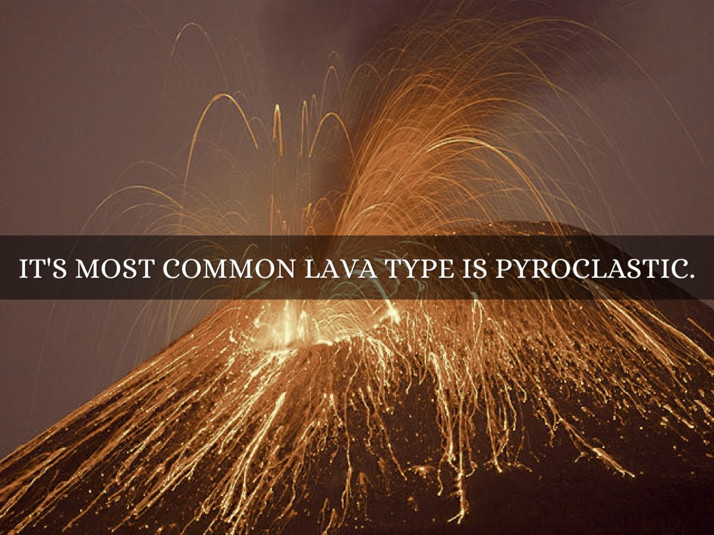 IT'S MOST COMMON LAVA TYPE IS PYROCLASTIC.