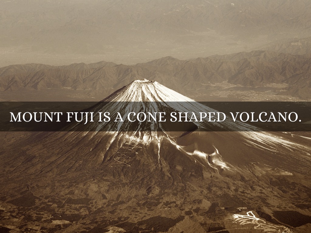 MOUNT FUJI IS A CONE SHAPED VOLCANO.