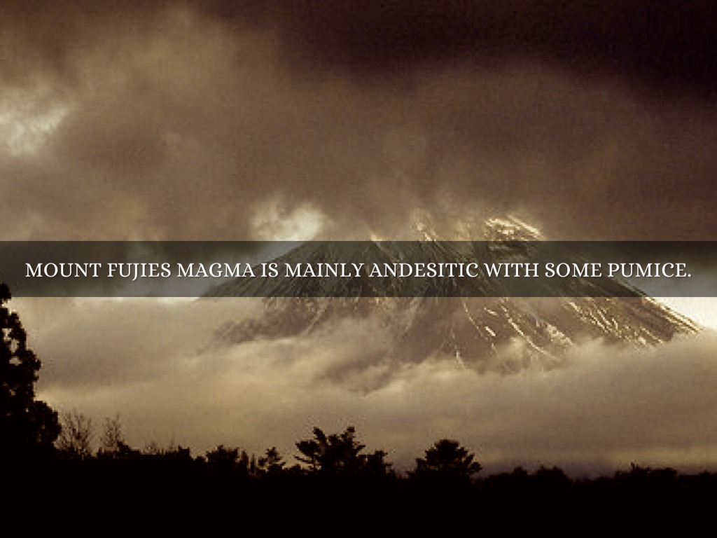 MOUNT FUJIES MAGMA IS MAINLY ANDESITIC WITH SOME PUMICE.