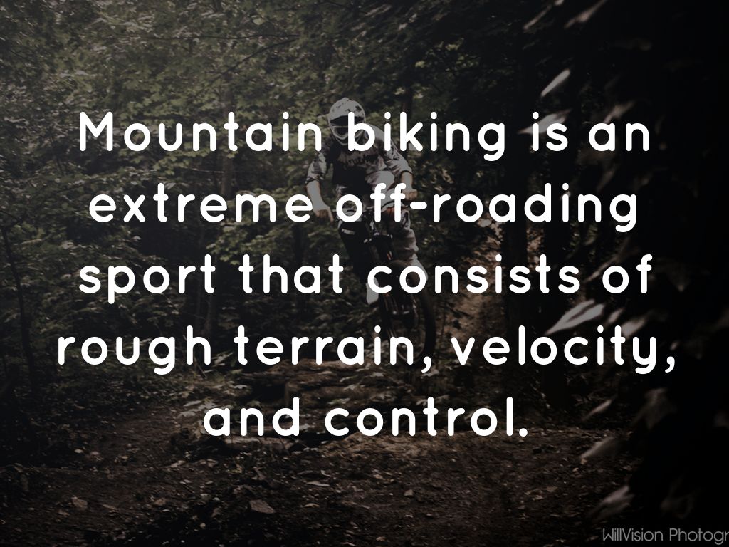 Mountain biking is an extreme off-roading sport that consists of rough terrain, velocity, and control.