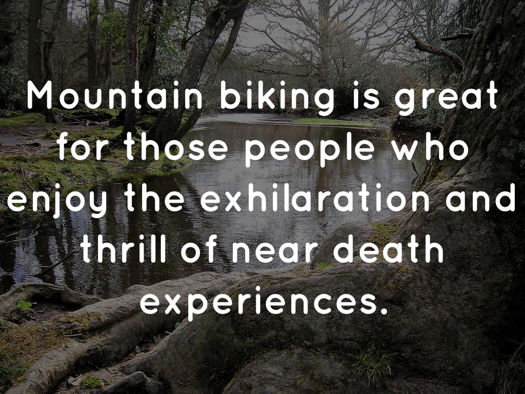 Mountain biking is great for those people who enjoy the exhilaration and thrill of near death experiences.