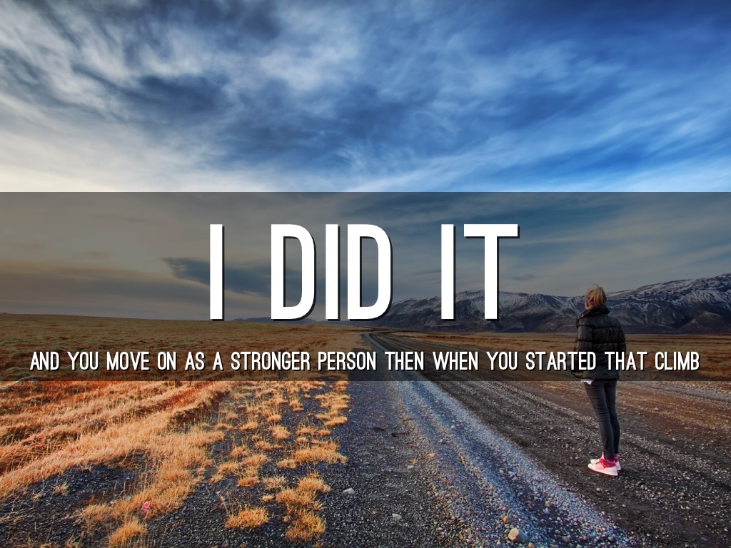 AND YOU MOVE ON AS A STRONGER PERSON THEN WHEN YOU STARTED THAT CLIMB