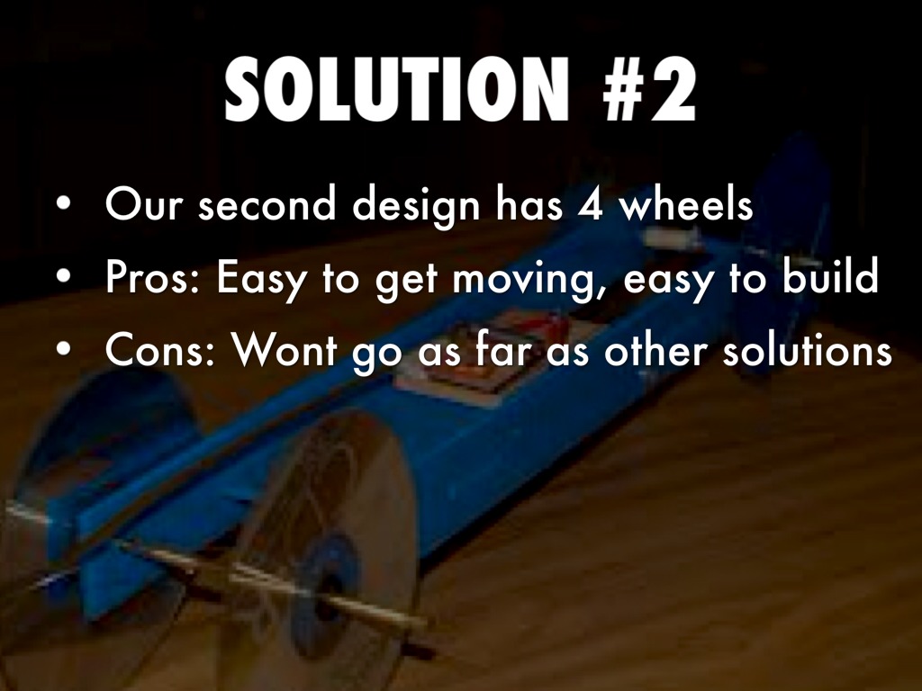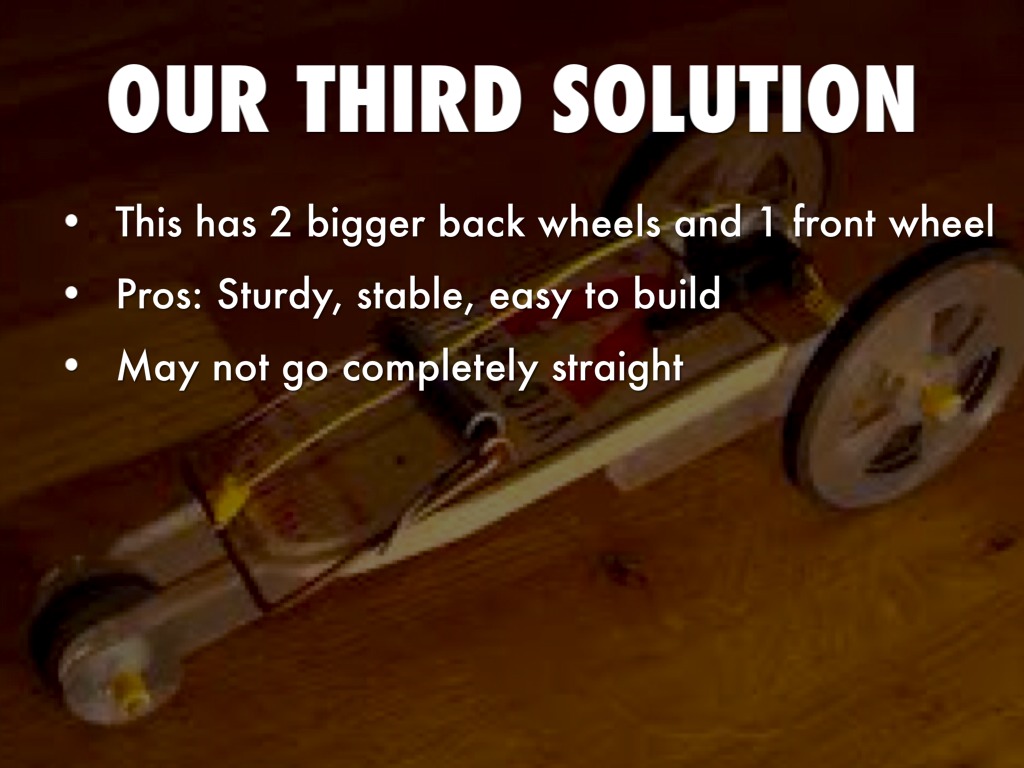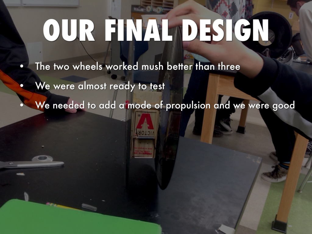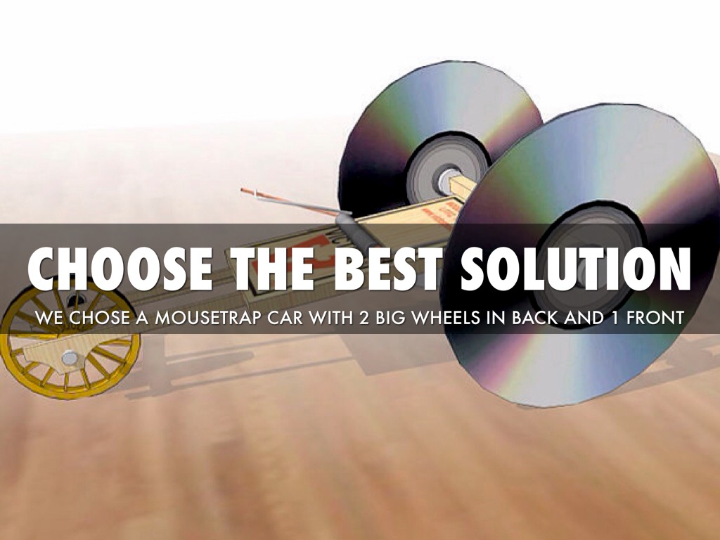 WE CHOSE A MOUSETRAP CAR WITH 2 BIG WHEELS IN BACK AND 1 FRONT