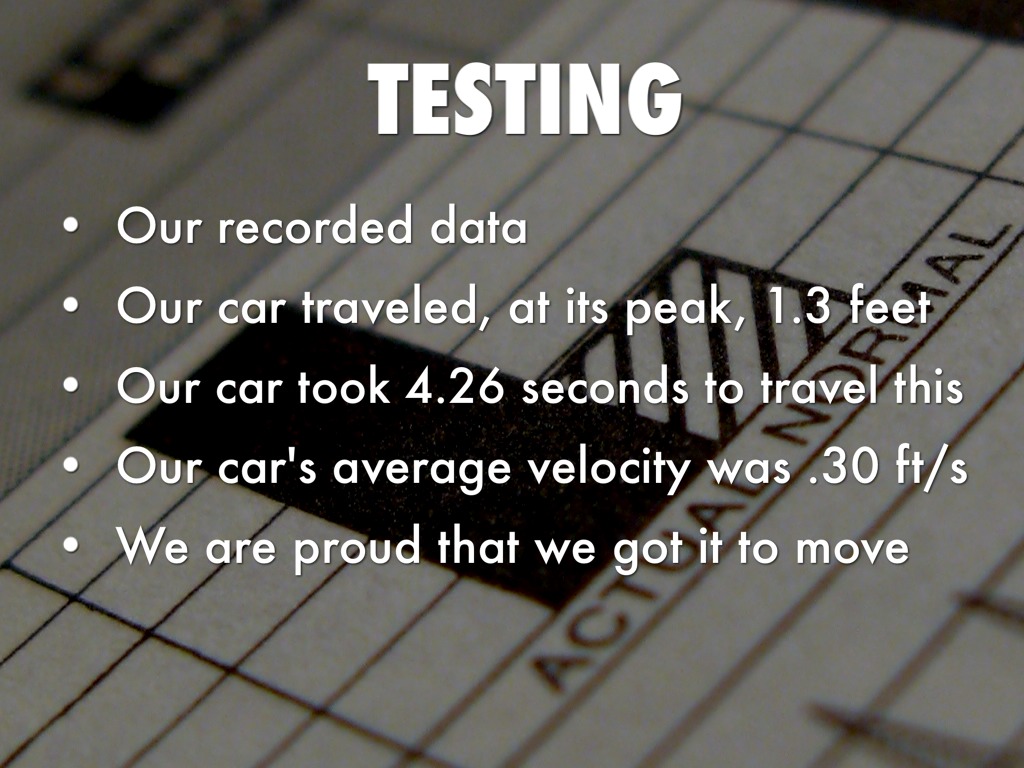 Our car's average velocity was .30 ft/s