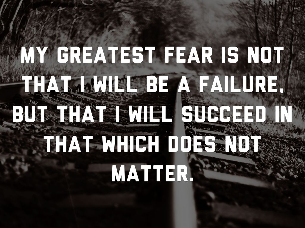 My greatest fear is not that I will be a failure, but that I will succeed in that which does not matter.