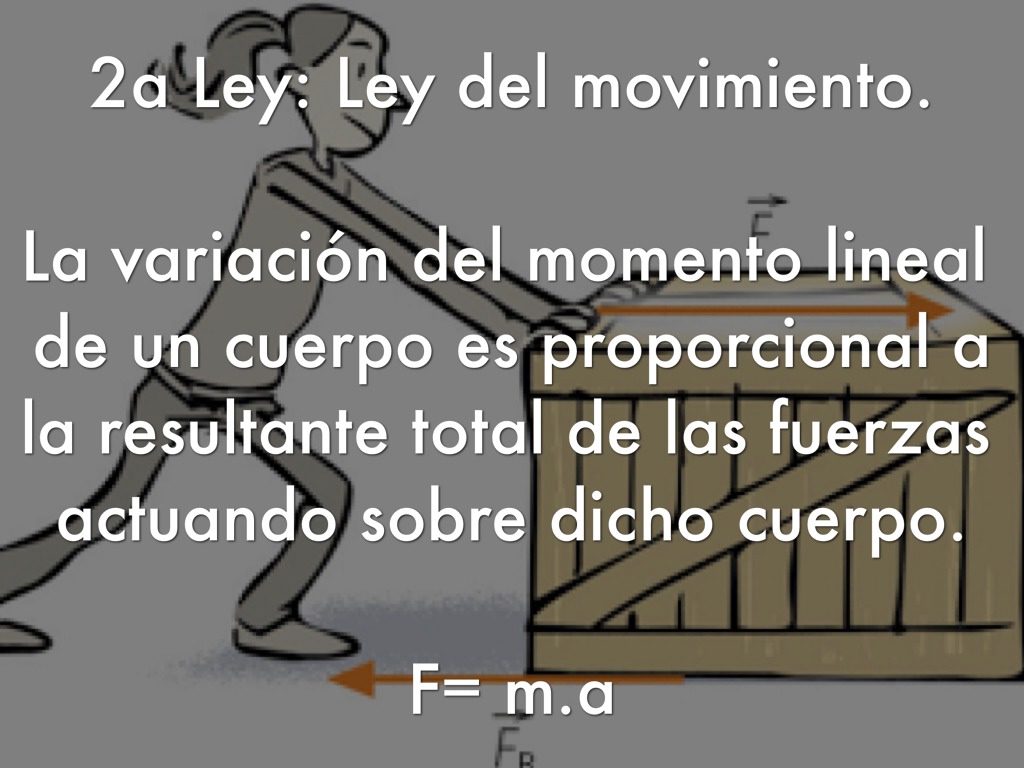 La variación del momento lineal de un cuerpo es proporcional a la resultante total de las fuerzas actuando sobre dicho cuerpo.