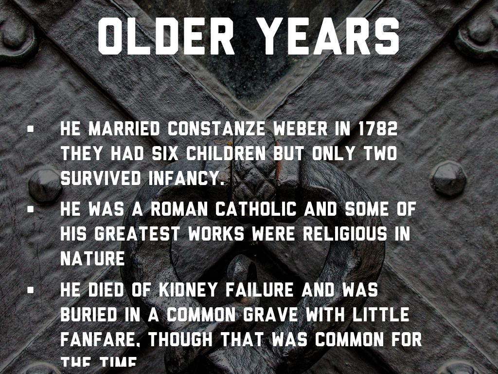 - His Parents are leopold Mozart and Anna Maria.