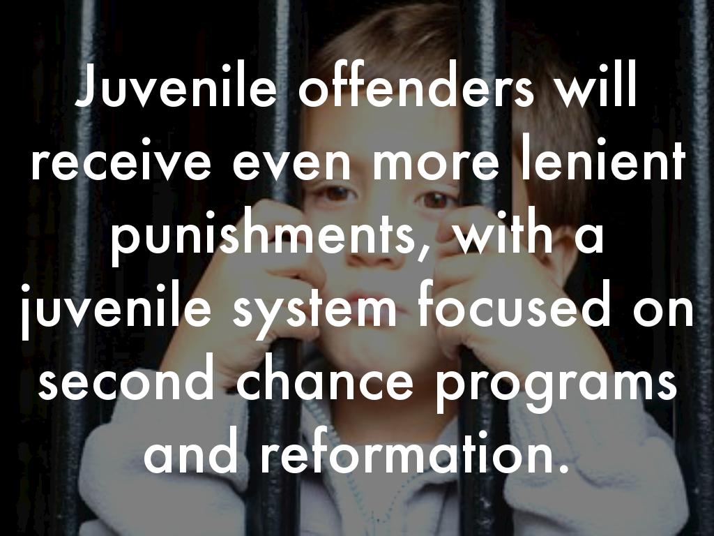 Juvenile offenders will receive even more lenient punishments, with a juvenile system focused on second chance programs and reformation.