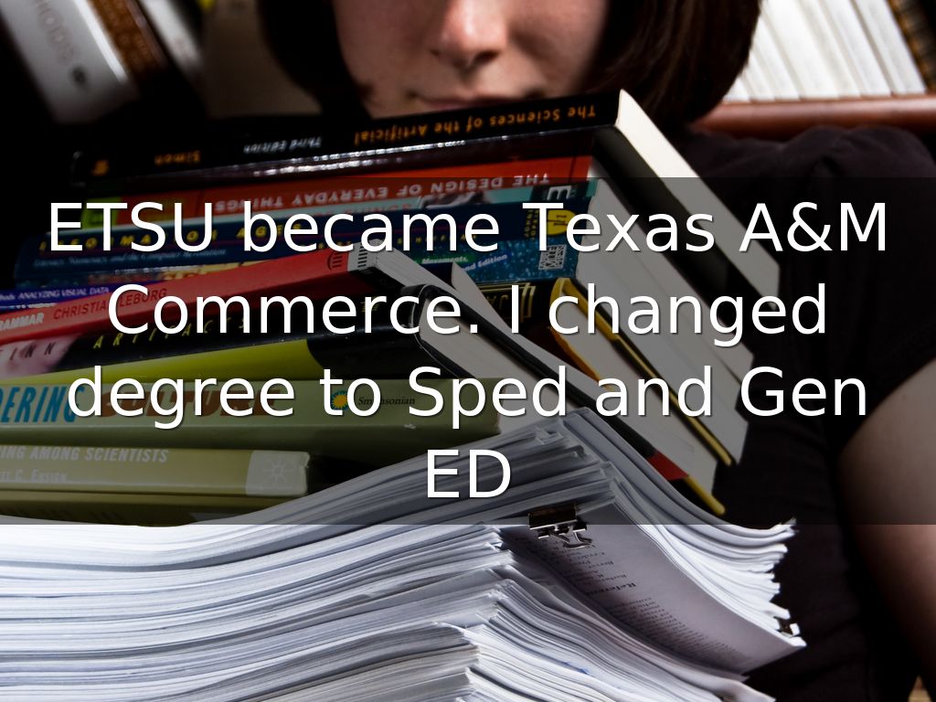 ETSU became Texas A&M Commerce. I changed degree to Sped and Gen ED