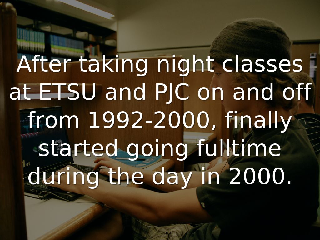 After taking night classes at ETSU and PJC on and off from 1992-2000, finally started going fulltime during the day in 2000.