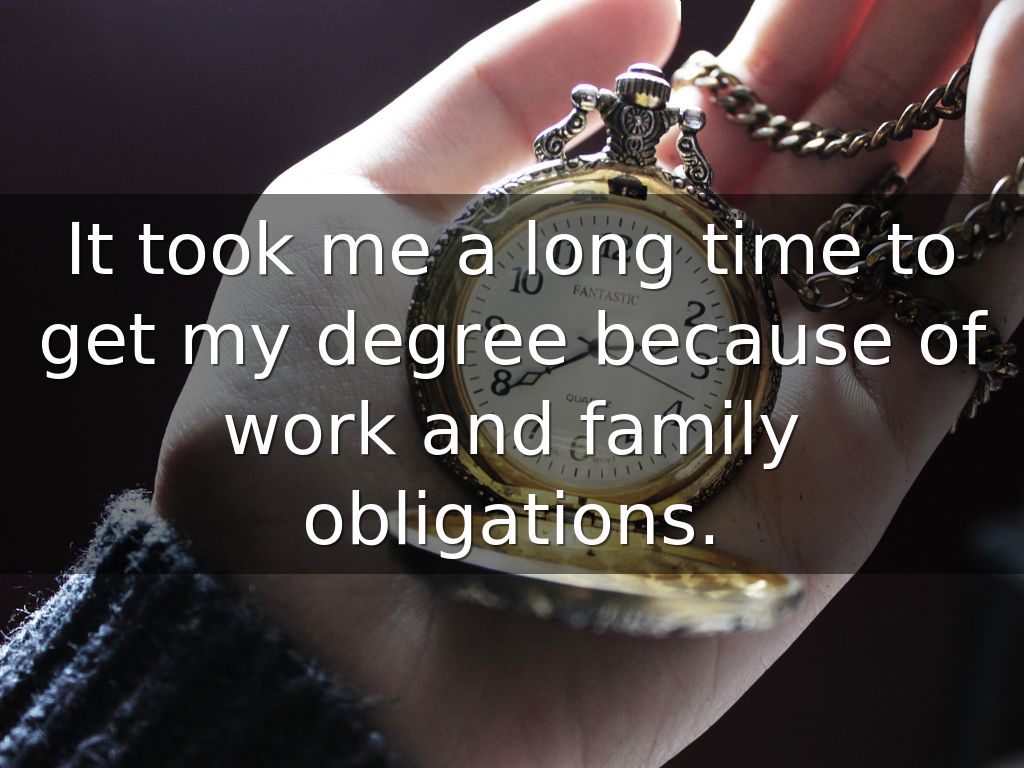 It took me a long time to get my degree because of work and family obligations.