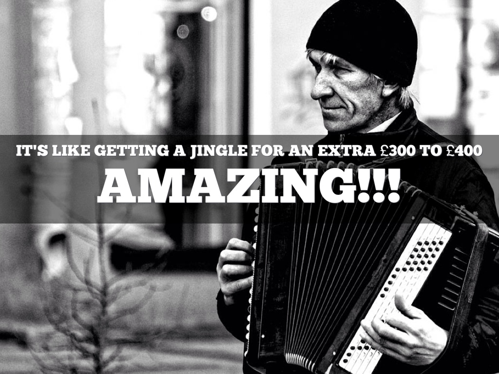 IT'S LIKE GETTING A JINGLE FOR AN EXTRA £300 TO £400