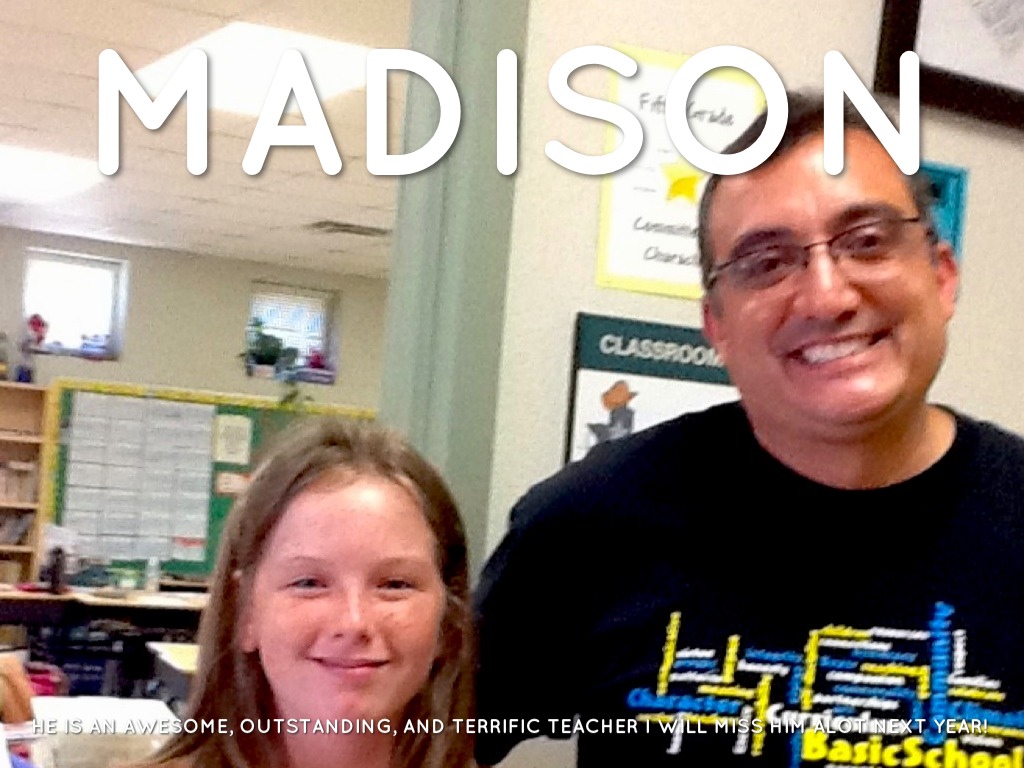 HE IS AN AWESOME, OUTSTANDING, AND TERRIFIC TEACHER I WILL MISS HIM ALOT NEXT YEAR!