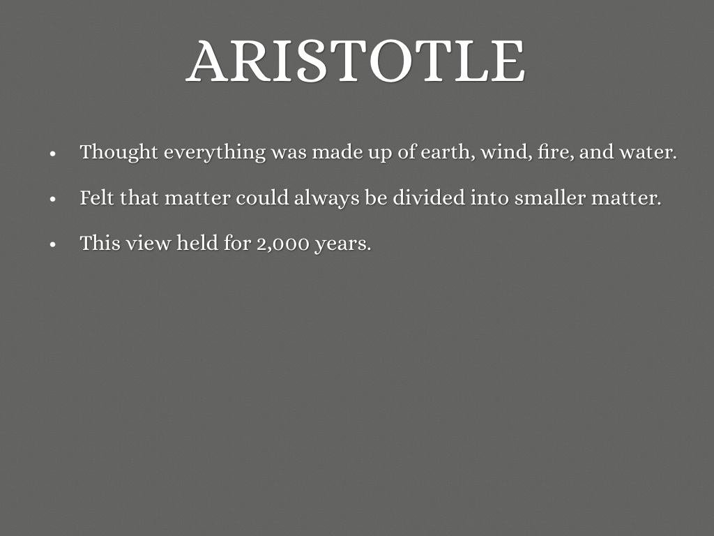 • Felt that matter could always be divided into smaller matter.