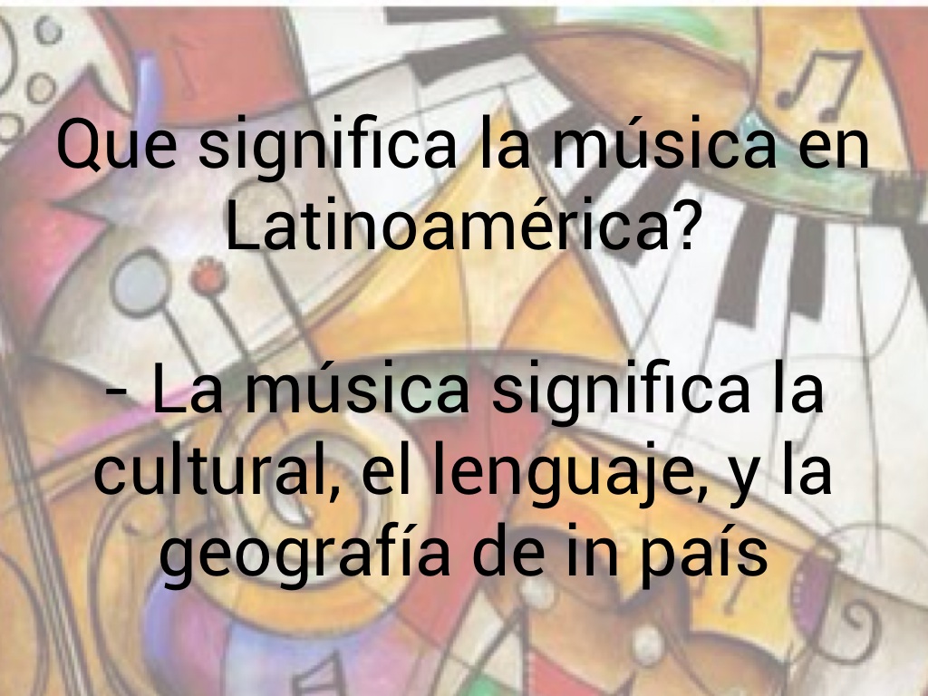 - La música significa la cultural, el lenguaje, y la geografía de in país