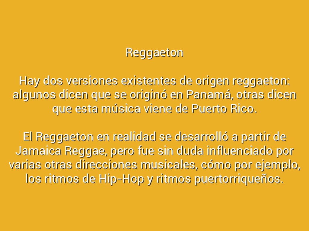 El Reggaeton en realidad se desarrolló a partir de Jamaica Reggae, pero fue sin duda influenciado por varias otras direcciones musicales, cómo por ejemplo, los ritmos de Hip-Hop y ritmos puertorriqueños.