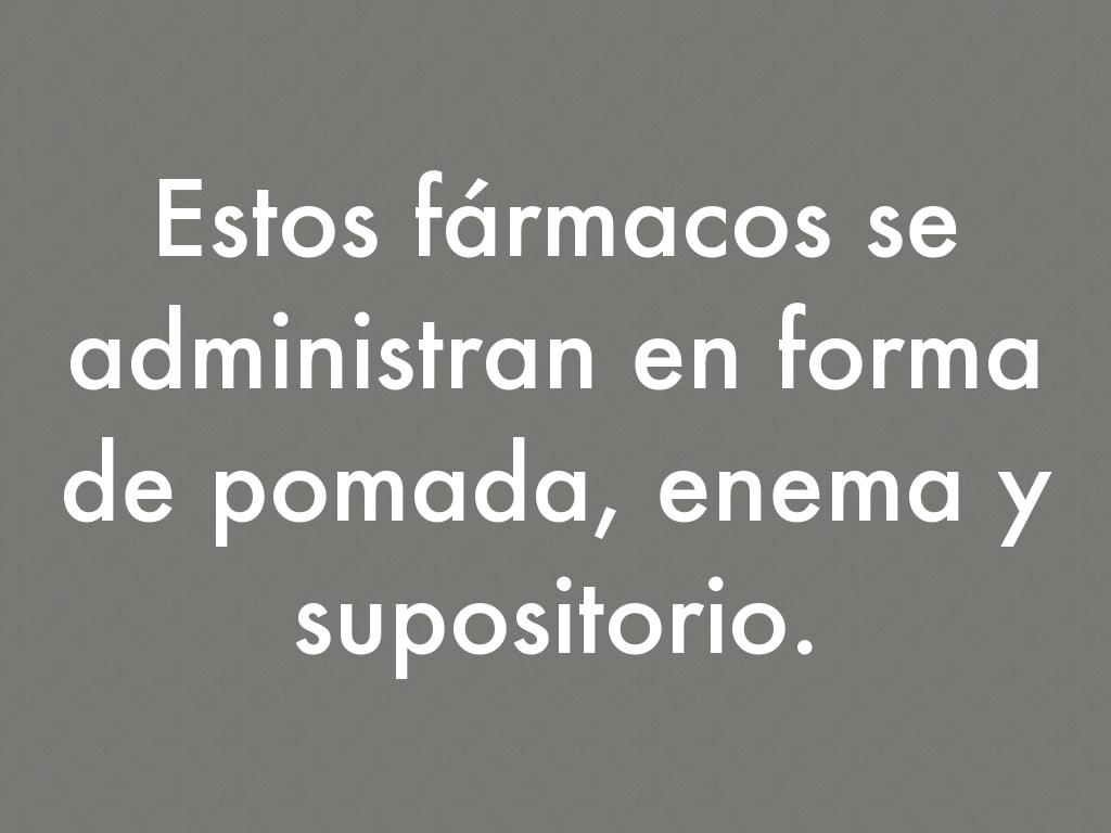 Estos fármacos se administran en forma de pomada, enema y supositorio.