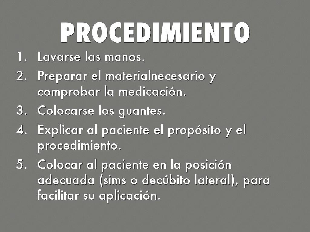 Colocar al paciente en la posición adecuada (sims o decúbito lateral), para facilitar su aplicación.
