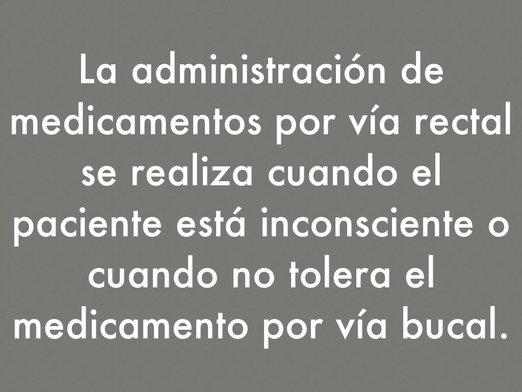 La administración de medicamentos por vía rectal se realiza cuando el paciente está inconsciente o cuando no tolera el medicamento por vía bucal.
