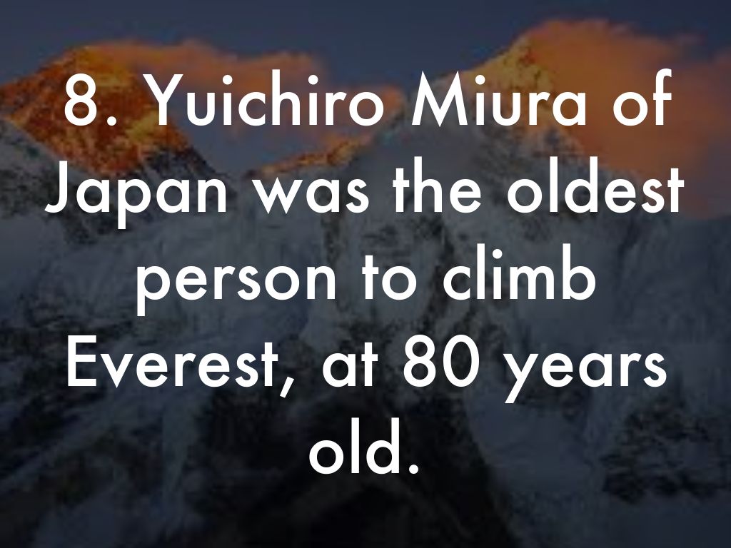 8. Yuichiro Miura of Japan was the oldest person to climb Everest, at 80 years old.