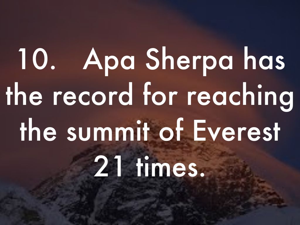 10. Apa Sherpa has the record for reaching the summit of Everest 21 times.