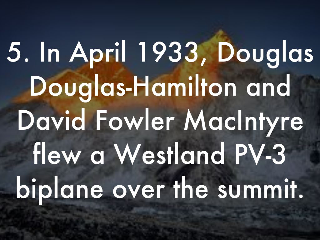 5. In April 1933, Douglas Douglas-Hamilton and David Fowler MacIntyre flew a Westland PV-3 biplane over the summit.