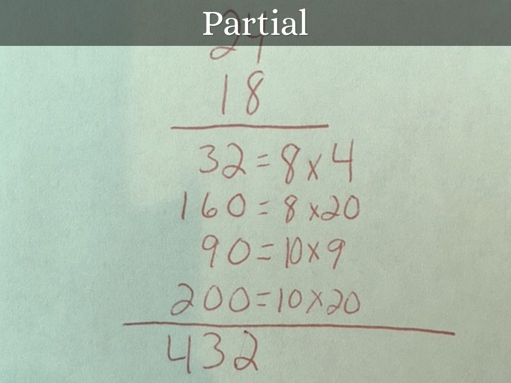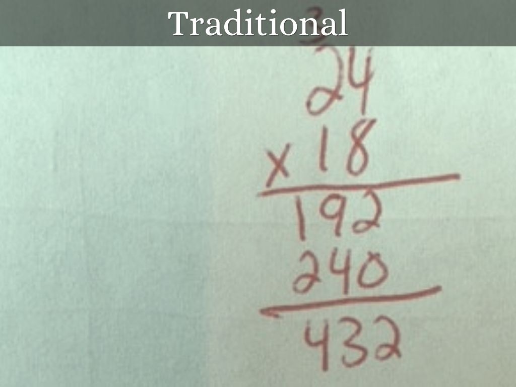 This is a traditional algorithm for a multiplication problem. Did you know there are at least three ways to solve this problem?