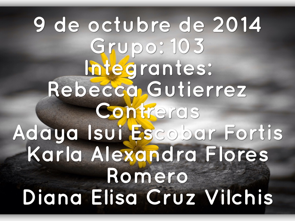 9 de octubre de 2014 Grupo: 103 Integrantes: Rebecca Gutierrez Contreras Adaya Isui Escobar Fortis Karla Alexandra Flores Romero Diana Elisa Cruz Vilchis