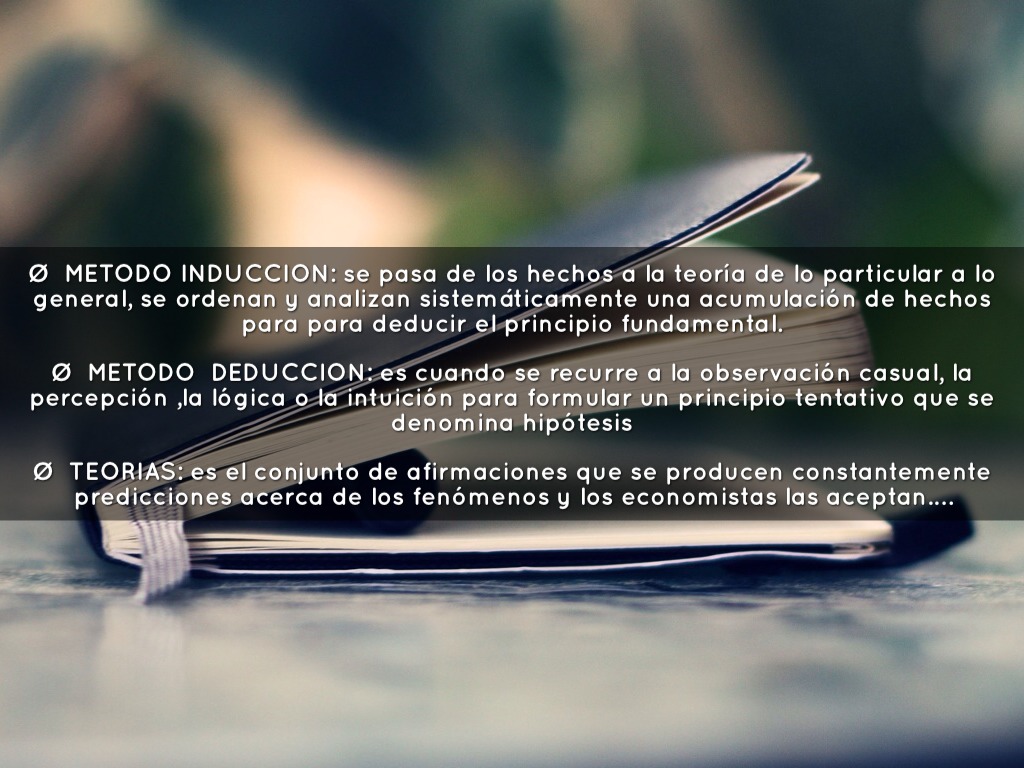 Ø TEORIAS: es el conjunto de afirmaciones que se producen constantemente predicciones acerca de los fenómenos y los economistas las aceptan.